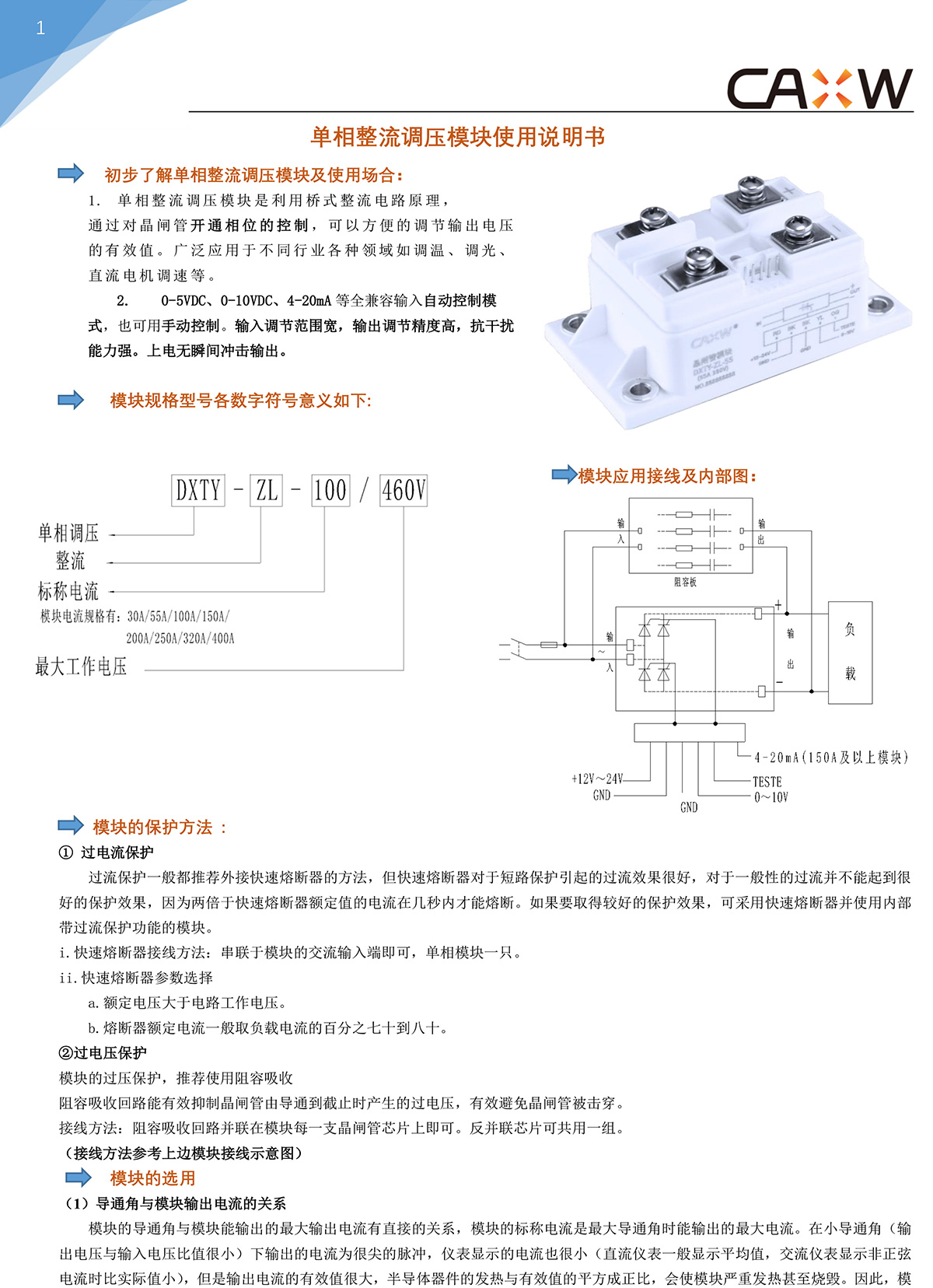 單相整流調壓模塊說明書(矽微)
